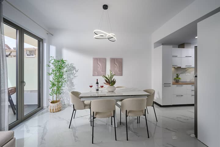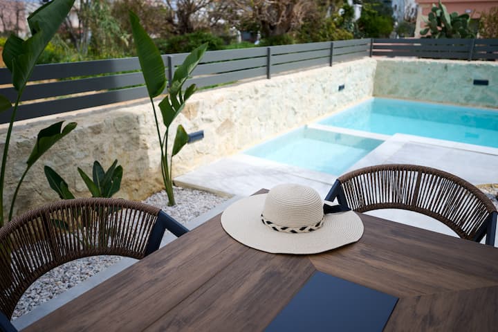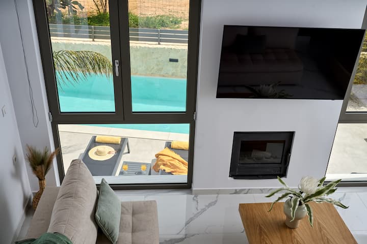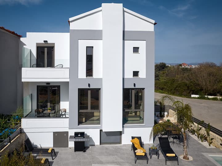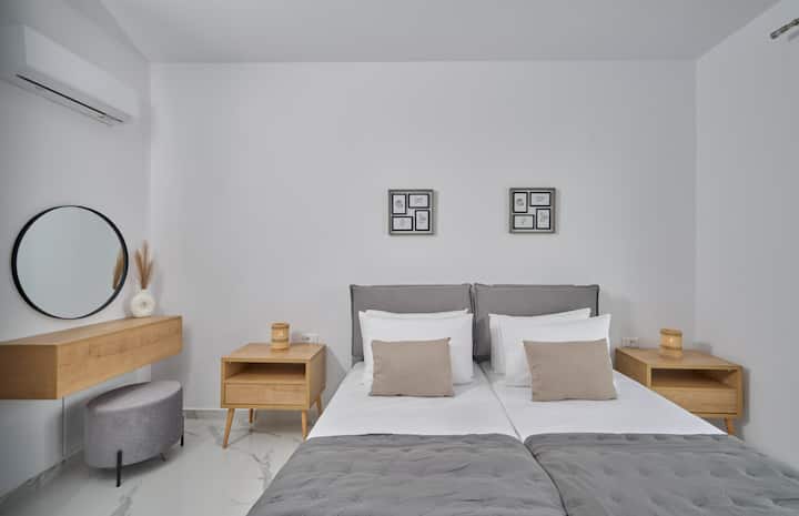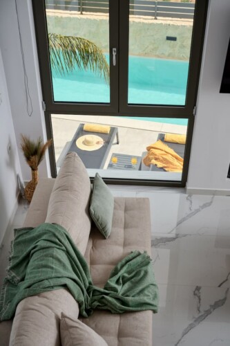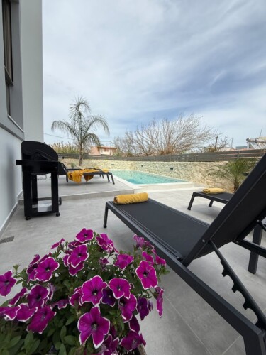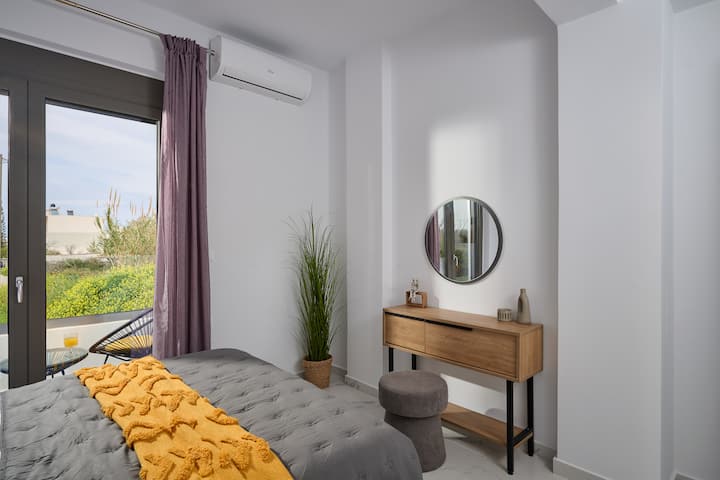 This stylish new accommodation is ideal for groups of friends, families who want to relax and experience the beauties of Crete. The modern furnishings, and floor to ceiling windows bring the outside light in, ensuring a relaxing sense of calm and connection with the natural world.